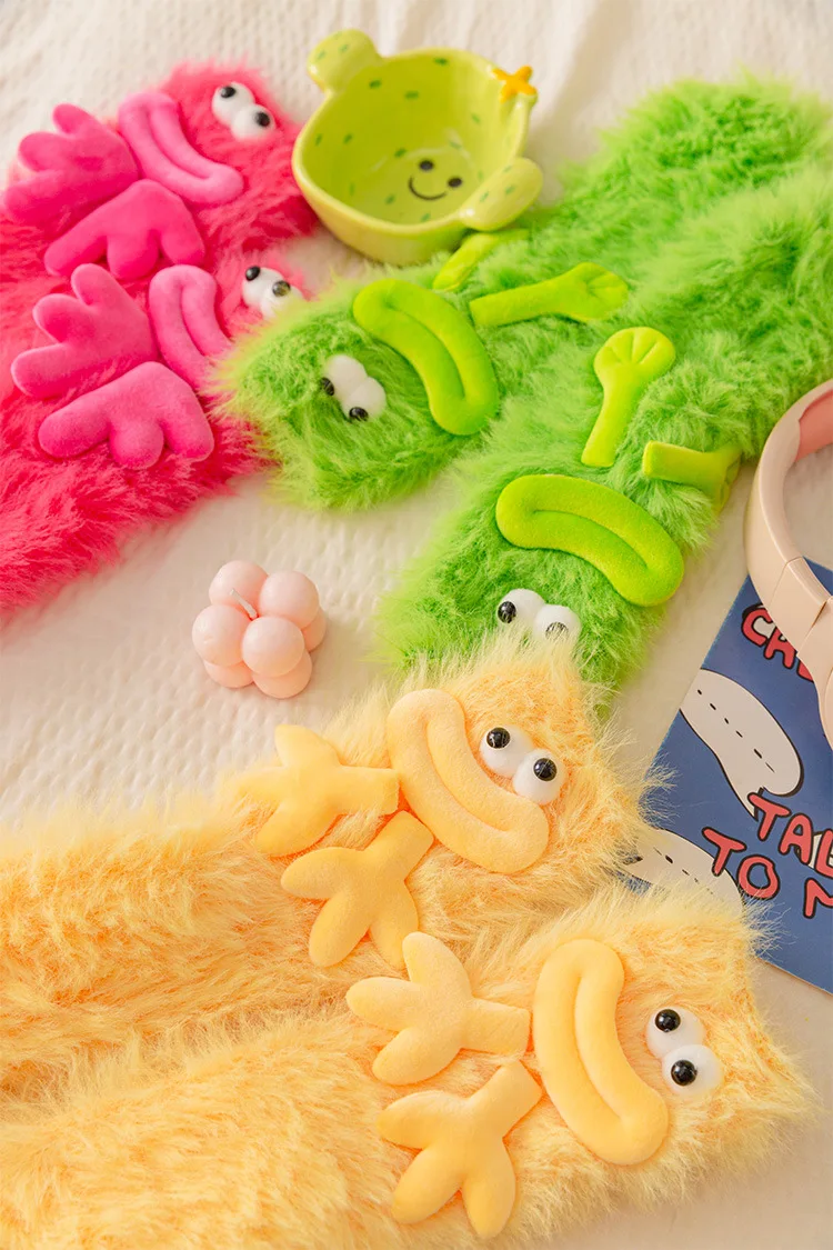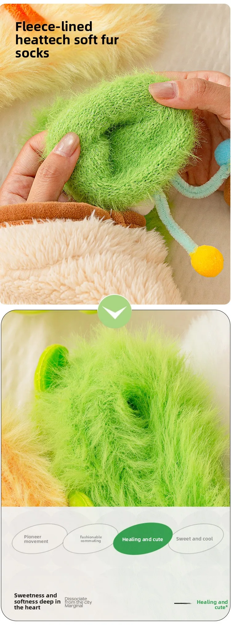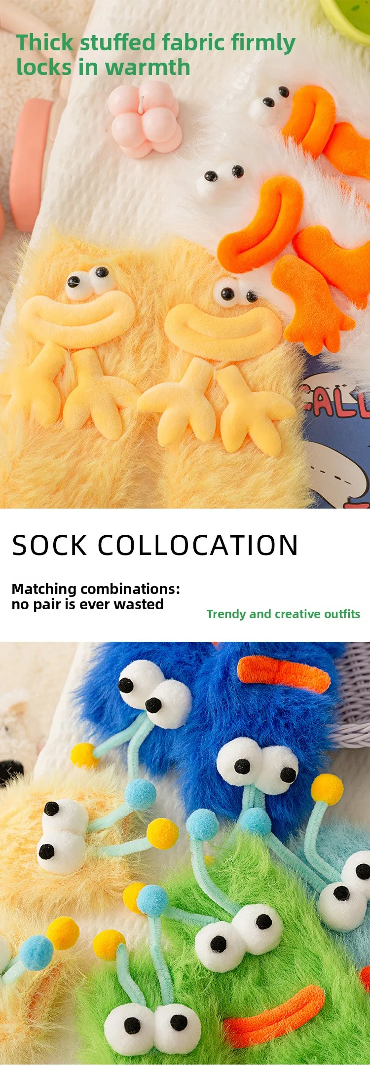 2 Pairs Funny Monster Socks Winter Women Warm Coral Fleece Floor Socks Couple Sleep Sock Fuzzy Socks Green Christmas Stockings